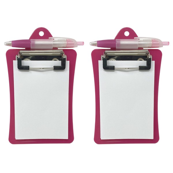 Clipco Mini Clipboard with Magnetic Back Includes Paper Pad and Pen (2-Pack) (Pink)
