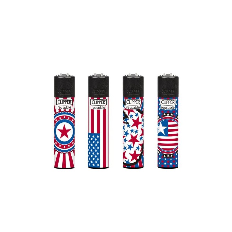 Clipper Lighters National Stars (4 Pack) Red,White, Blue
