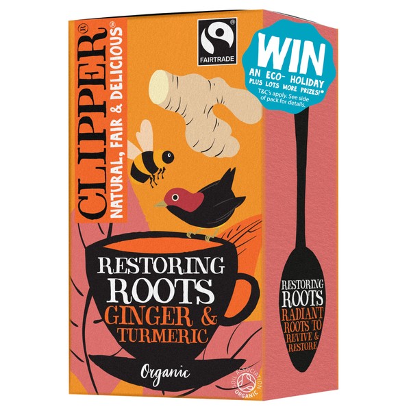 Clipper Organic Restoring Roots Ginger & Turmeric Tea Bags | 20 Tea Infusions...