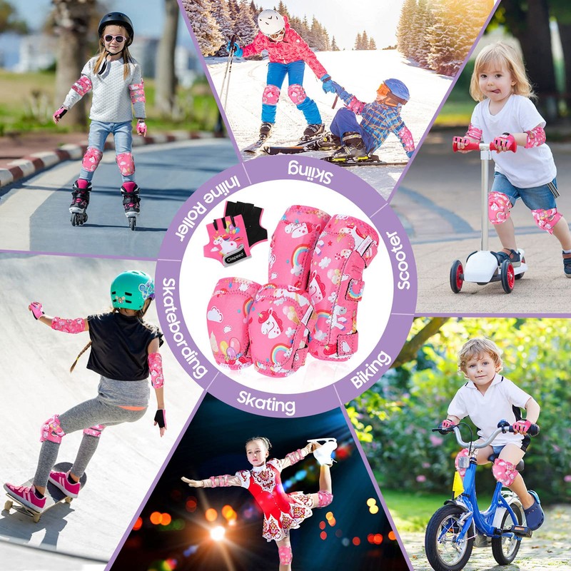 - 🚴KIDS' PROTECTIVE GEAR: Our top quality kids knee pads elbow guards with protective golves are widely use in all kinds of outdoor activities, such as skateboarding, cycling, roller skating, riding, scooter,skiing,etc.