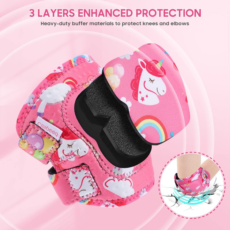 - 🏆3 LAYERS- PAD DESIGN: Absorption and reinforced materials, such as rubber and sponge, well protect your kids from geting injured when they fall down, minimise the shock of a hard ground floor and protect kids' knees getting hurt,preventing patellar fracture and keep them safe.