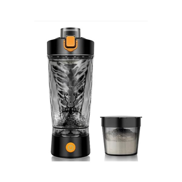 - Easy to Clean: Cleaning our shaker bottles is a breeze. Simply add detergent and water, switch it on, and let the bottle clean itself. You can also remove the battery base and place the bottle in the dishwasher for effortless cleaning.