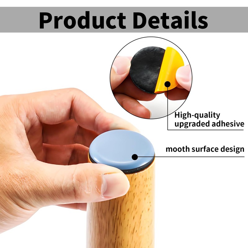 The self-adhesive furniture sliders makes installation quick and simple. Just lift or tilt your furniture, place the sliders on the legs, and they stay securely in place for stable movement.