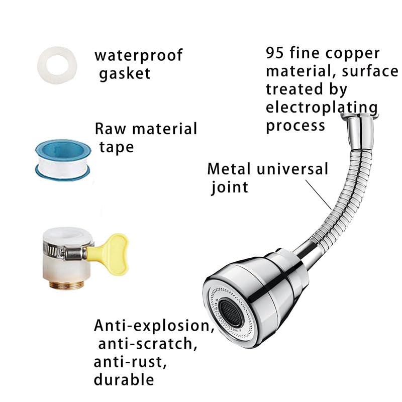- 【Material】 The flexible tap is made of 95 fine copper. The surface is treated by electroplating process. It is explosion-proof, anti-scratch and rustproof, and is durable. The stainless steel hose of the flexible kitchen faucet can be bent at will, is durable and will not rust.