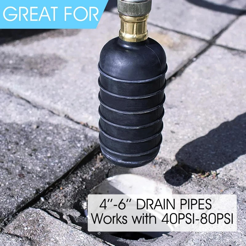 This drain unclogger bladder tool use the water power of drainage to "push" the blockage down the main drain and sewer lines, no need to use other complex tools or call a plumber to clean/repair pipes.