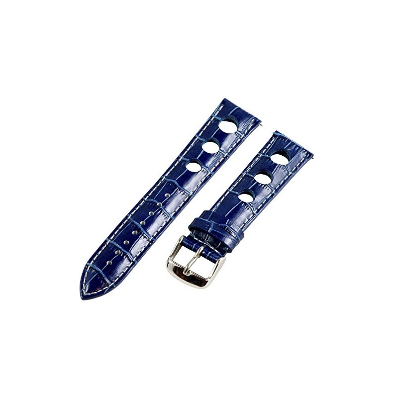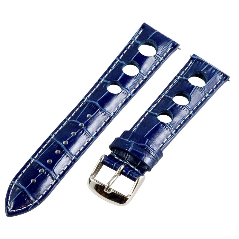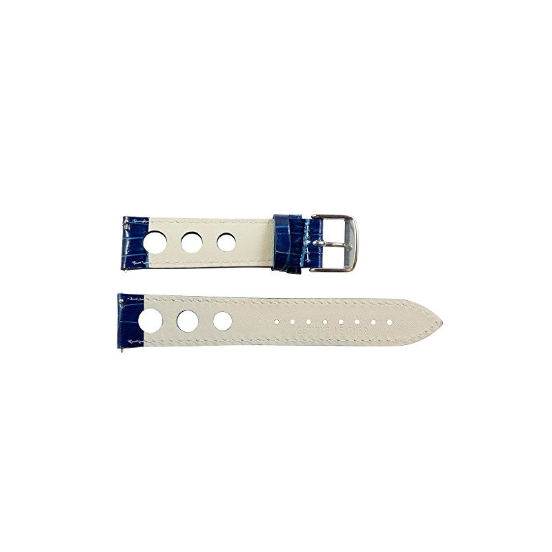 Clockwork Synergy, LLC 18mm Rally 3-hole Croco Navy Blue/White Leather Interchangeable Replacement Watch Band Strap