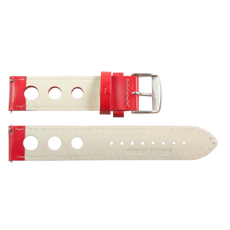 Clockwork Synergy, LLC 26mm Rally 3-hole Smooth Red / Grey Leather Interchangeable Replacement Watch Band Strap