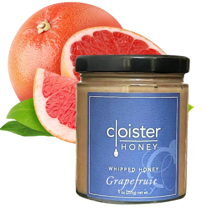 Cloister Honey Whipped Honey - Grapefruit (9 oz) | Hand Crafted | Raw Artisan Honey | 100% Pure, Raw & Unfiltered | All Natural | Made in USA |