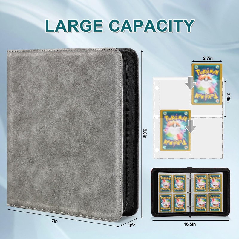 • 【Made with High-Quality】:The water-resistant premium Polyester, Light zipper and double-seamed PVC card sheets of this trading card binder will keep the cards away from stain, fading or deformed.The strong metal zipper ensures that your cards remain secure and prevents any accidental drops.Can protect card well and maintaining cards' brand new status.