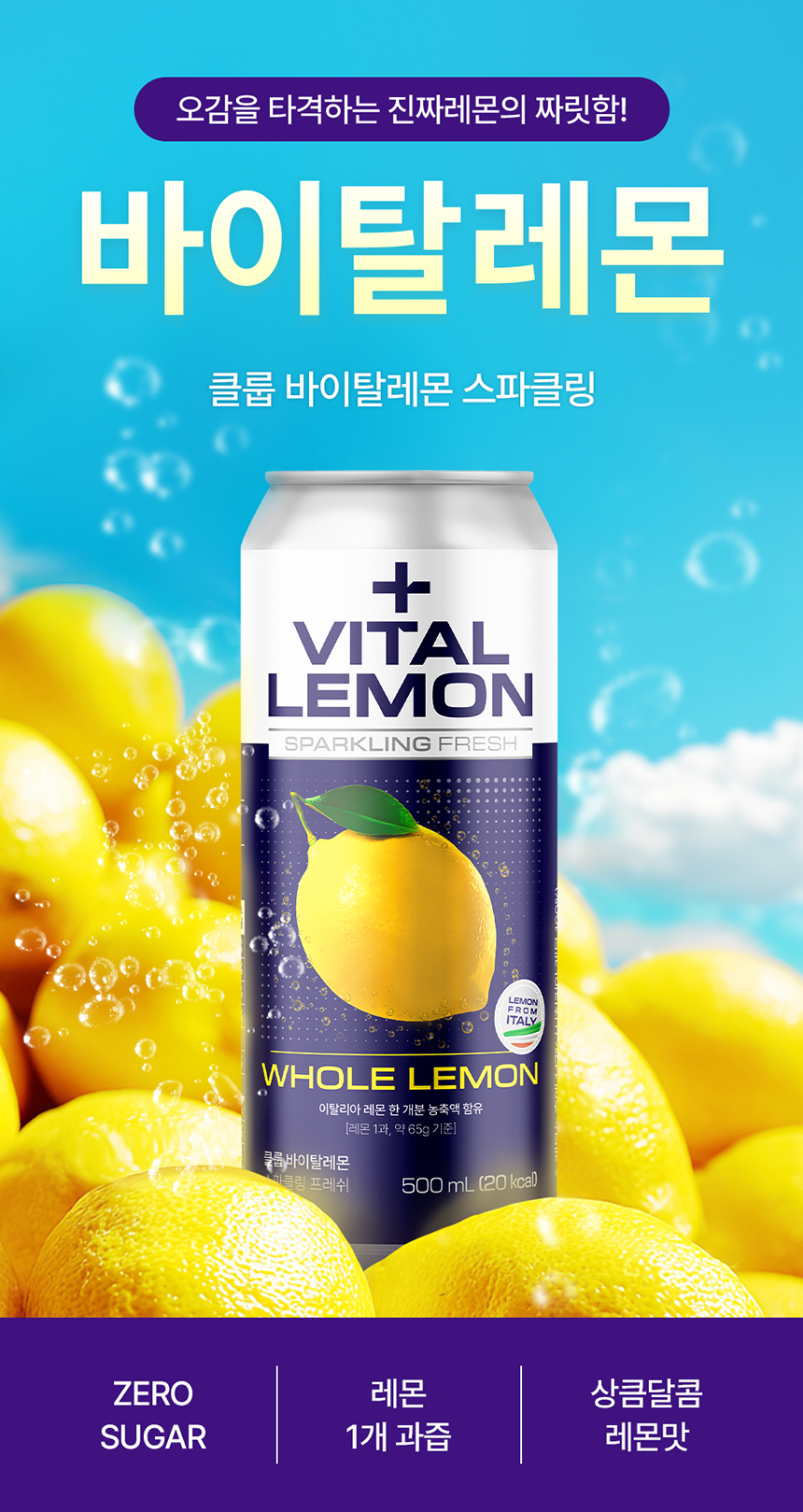 Cloop Vital Lemon Sparkling Fresh 500ml 12 pieces / 클룹 바이탈레몬 스파클링 프레쉬 500ml 12개