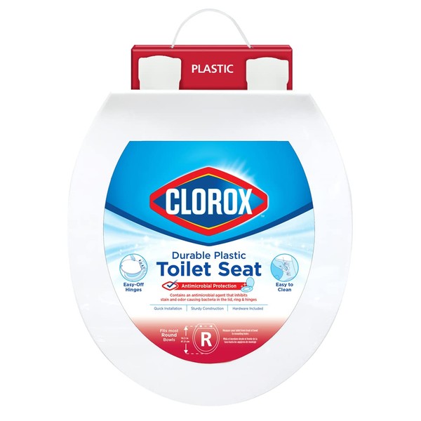 Clorox Round Beveled Plastic Toilet Seat with Easy-Off Hinges – Wiggle-Free Design