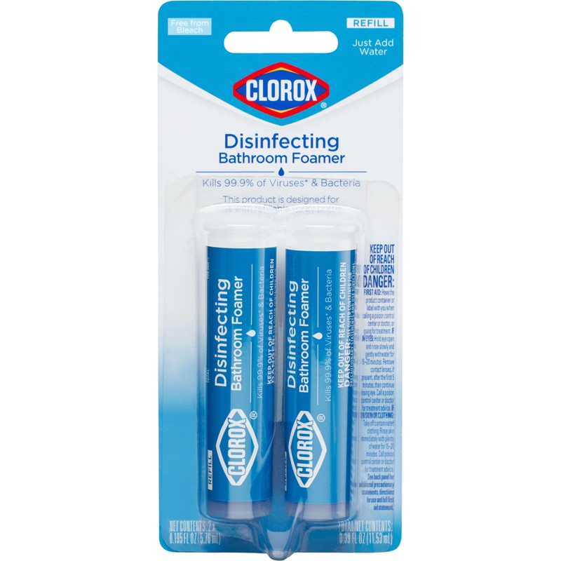 - EASY TO USE: These small but mighty refill cartridges make life easy with the Clorox Disinfecting Bathroom Foamer Starter Kit; just add water, pop in a cartridge, and replace the sprayer