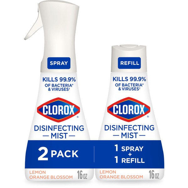 Clorox Disinfecting Mist, Lemon and Orange Blossom, 1 Spray and 1 Refill, 16 oz Each