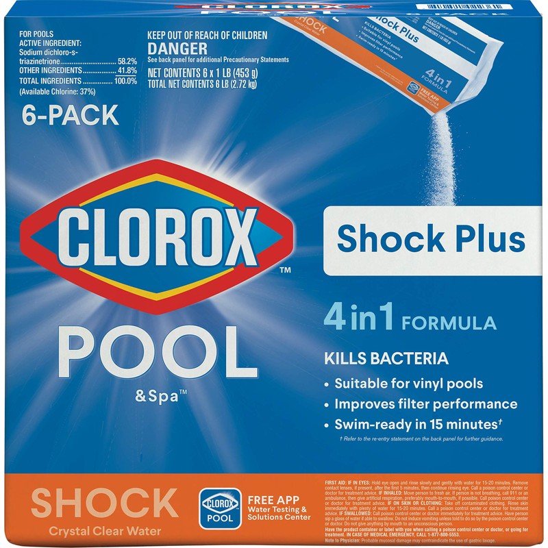 Clorox® Pool&Spa™ Shock Plus, for Crystal Clear Swimming Pool Water, Swim-ready in 15 minutes, Suitable for vinyl pools (6-Pack)