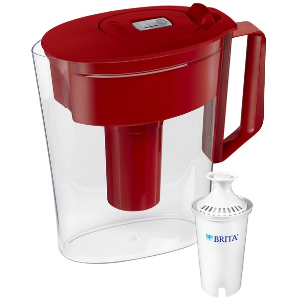 Brita Small 5 Cup Water Filter Pitcher with 1 Standard Filter, BPA Free - SOHO, Red