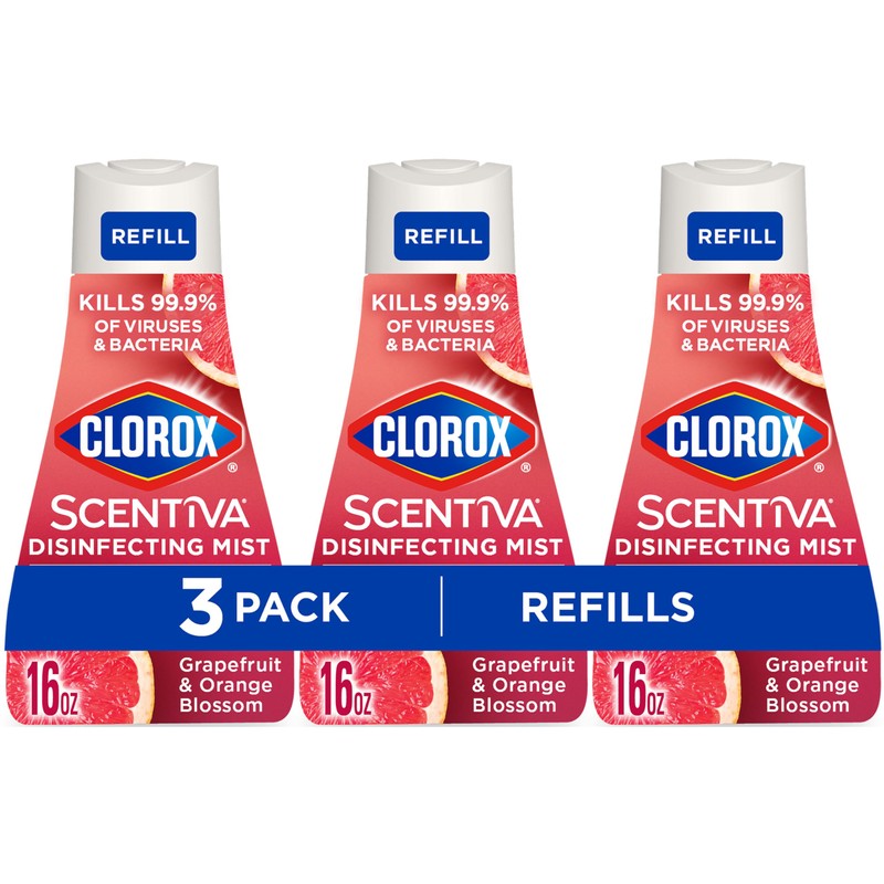 Clorox Scentiva Disinfecting Mist, Grapefruit and Orange Blossom, Refill, 16 Fl Oz Each, Pack of 3