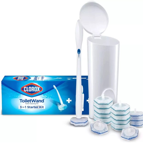 - WAND AND CADDY: Clorox ToiletWand comes with a long handle to help you clean from a distance, and a caddy to conveniently store scrubbing pad refills