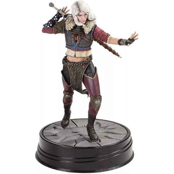 - The figure depicts Ciri, the adopted daughter of Geralt of Rivia, in her battle-ready attire and holding her sword.