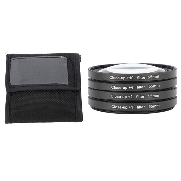 Close Up Filter Kit 4 in 1 +1 +2 +4 +10 Macro Lens Filter Optical Glass with Storage Pouch Camera Filter for Digital Camera Photo 55mm