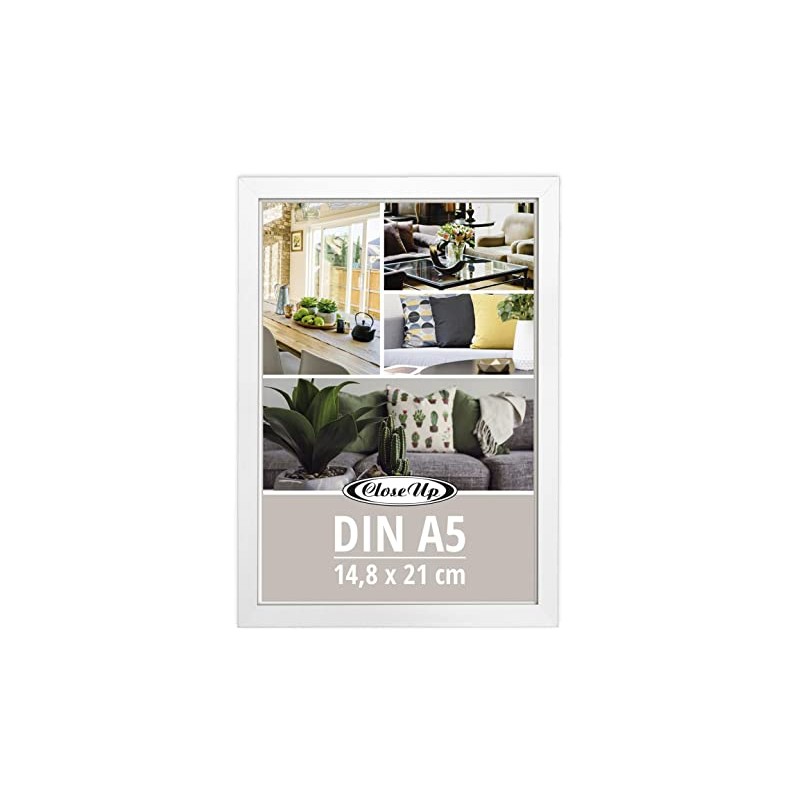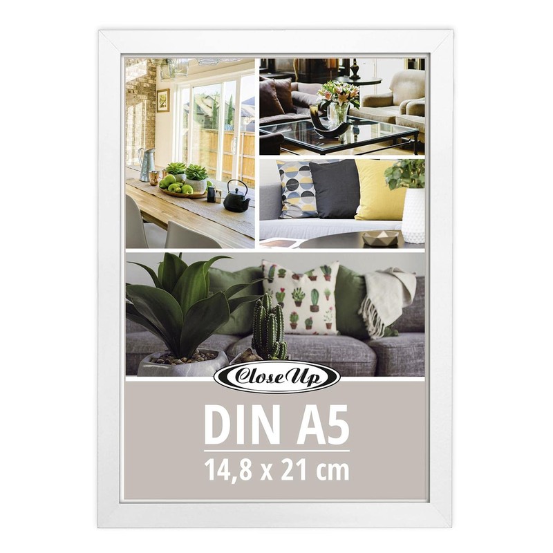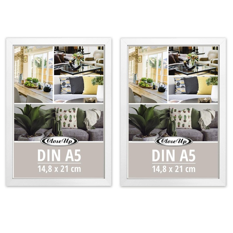 Close Up Picture Frames Set of 2 DIN A5 (14.8 x 21 cm) Wooden Decoration (MDF) White with Back Panel and Stand PVC Panel (Unbreakable) Profile Width 15 mm