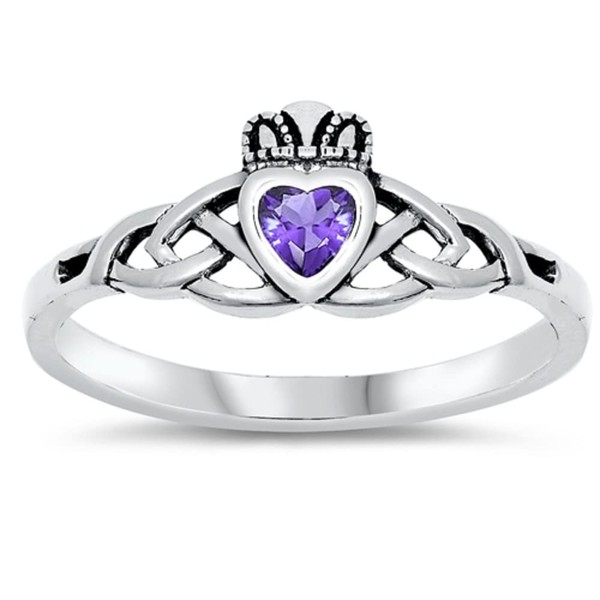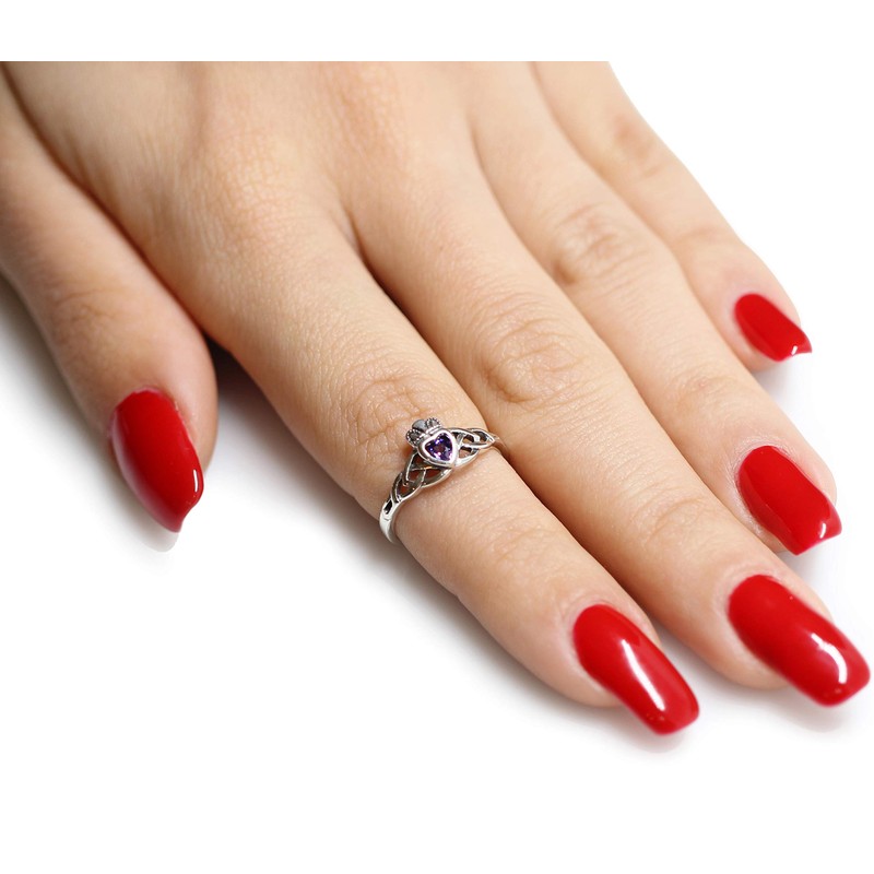 Simulated Amethyst Cubic Zirconia Claddagh Wicca Guidance Ring 925 Sterling Silver Size 3. Our silver jewelry is made from Sterling Silver. Sterling Silver is a mixture of high-quality 92.5% or higher pure silver with alloys to add strength and ability to