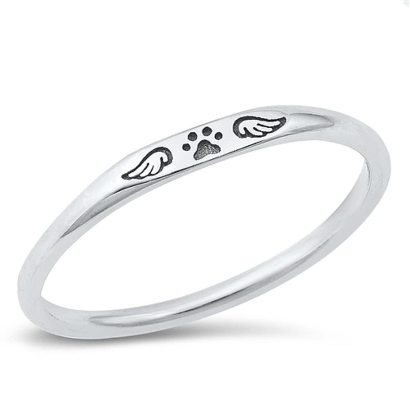 CloseoutWarehouse Sterling Silver Paw Print and Wings Ring Size 7