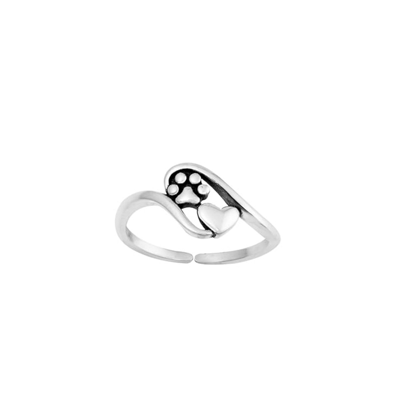 CloseoutWarehouse Sterling Silver Paw Print & Heart Toe Ring