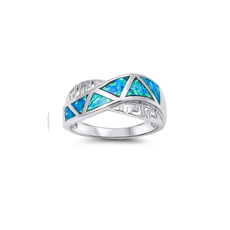 CloseoutWarehouse Triangles & Greek Pattern Infinity Bind Ring Blue Simulated Opal 925 Sterling Silver Size 10