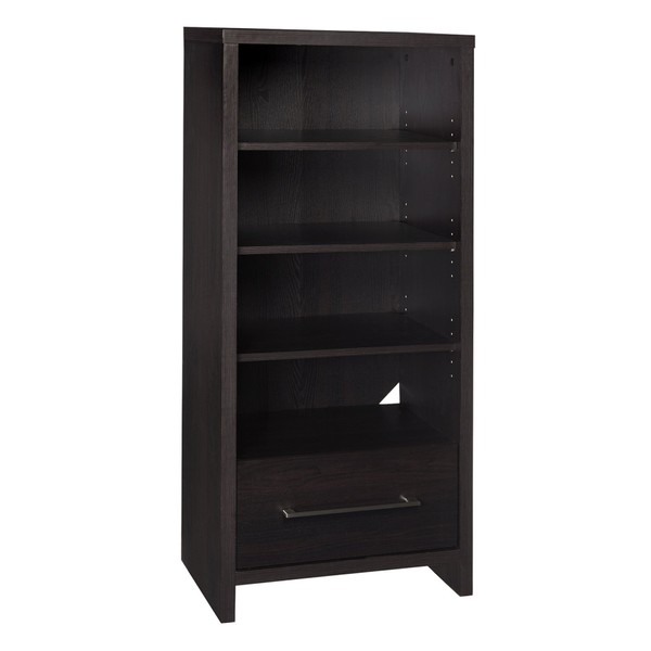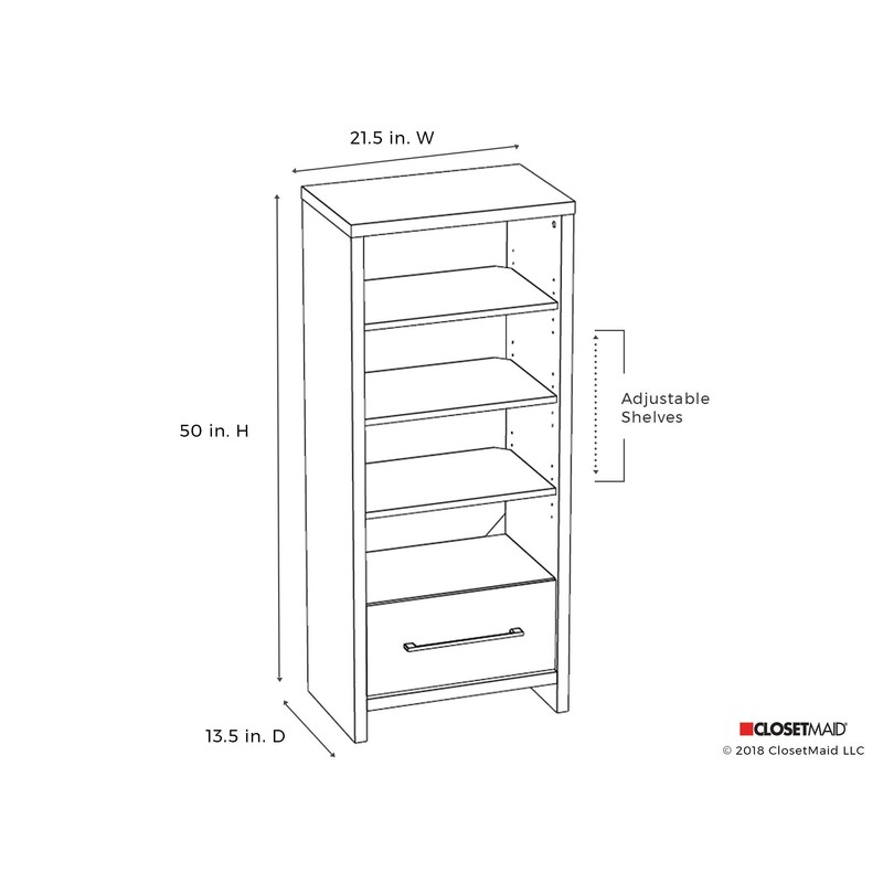 Add the perfect touch to your home office or living room with this sturdy bookcase or media Tower. This bookcase with three adjustable shelves features a full back panel with concealed cord management making it perfect for storing media items, stereos, video games and more. The large bottom drawer has smooth metal glides adding concealed, stylish storage. Available in two neutral finishes, add this ClosetMaid bookcase or media Tower to your home decor today