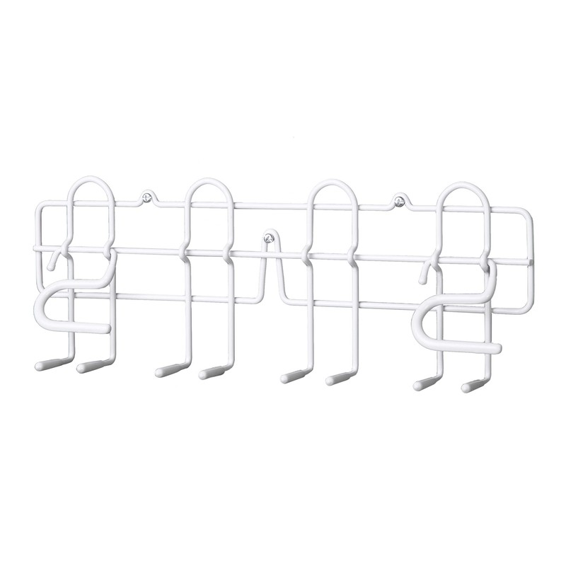 The Broom & Mop Holder from ClosetMaid is easy to mount on walls or doors and ideal for garages, utility and laundry rooms. It has eight strong wire hooks with white rubber tips and two catches.