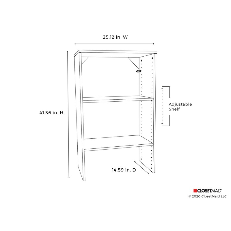 ClosetMaid SuiteSymphony Wood Shelf Unit, 2 Shelves, Adjustable For Storage, Closet, Clothes, Shoes, Décor, TV, Books, Pure White, 25" Tower Base