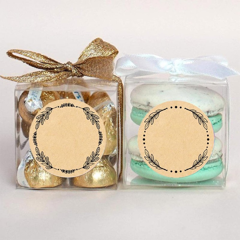 CLOSOCKEY 500PCS Canning Labels, 2Inch Round Kraft Paper Jar Labels with Wreath Designs, Brown