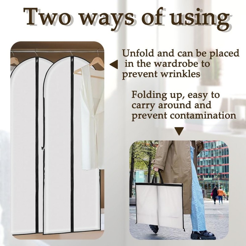 - 【Wide Application】The clothes bag can store your wedding dresses, dresses, suits, coats, dance dresses, and skirts, etc., so that your clothes are kept clean.