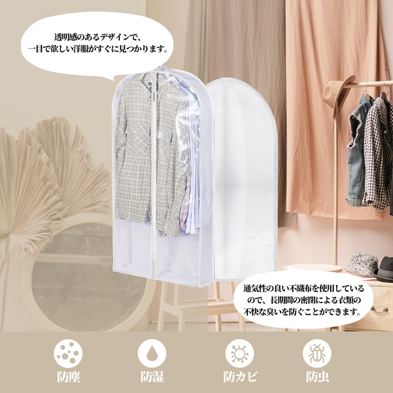 - Transparent film on the surface makes it easy to see the clothes inside. The back is made of non-woven fabric so it is breathable and does not contain moisture, dust or mildew, allowing you to store your clothes hygienically