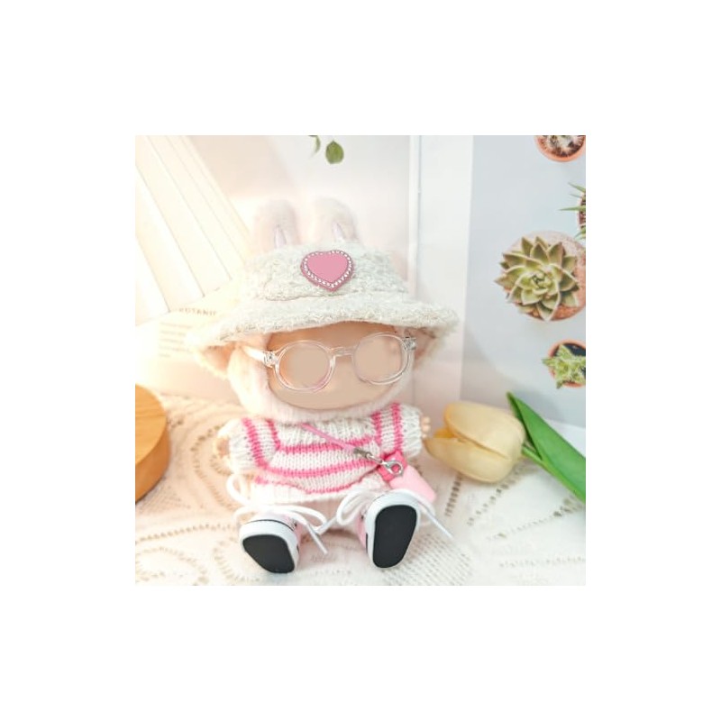 - Clothes for 17cm Labu Dolls,Sweater,Hat,Glasses,Shoes - Pink