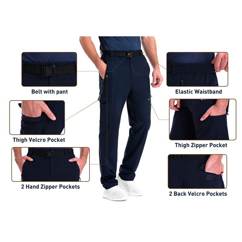clothin Men's Elastic-Waist Travel Pant Stretchy Lightweight Pant Multi-Pockets Quick Dry Breathable(Blue M-30)