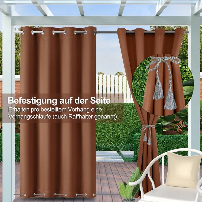 - Super windproof: The outdoor curtain contains 8 pieces at the top. (ID4 cm) and bottom 8 pieces. (ID2 cm) weatherproof eyelets incorporated. This allows the outdoor curtain to be fixed to the floor as a wind protection.