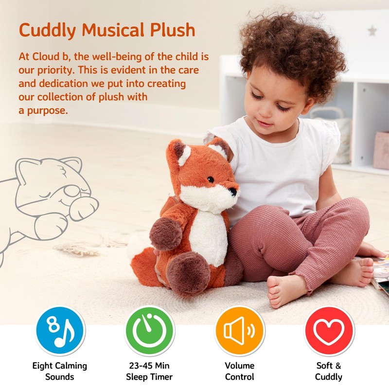 Cloud b Soundmaschine mit weißem Rauschen beruhigenden Geräuschen | Kuscheliges Stofftier | Einstellbare Einstellungen und automatische Abschaltung | Frankie der Fuchs