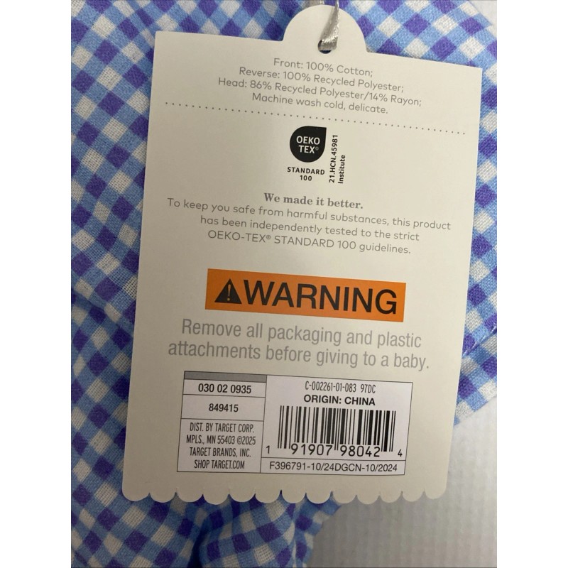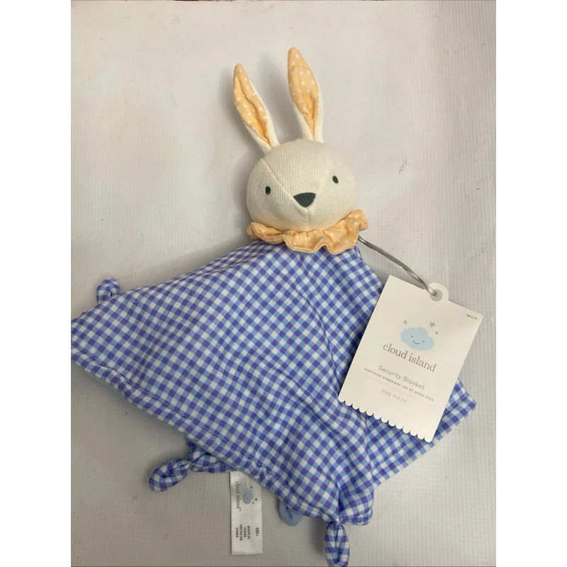 Cloud Island Bunny Baby Security Blanket Blue Check Infant Plush Rabbit Head 12"x12". New with tags.