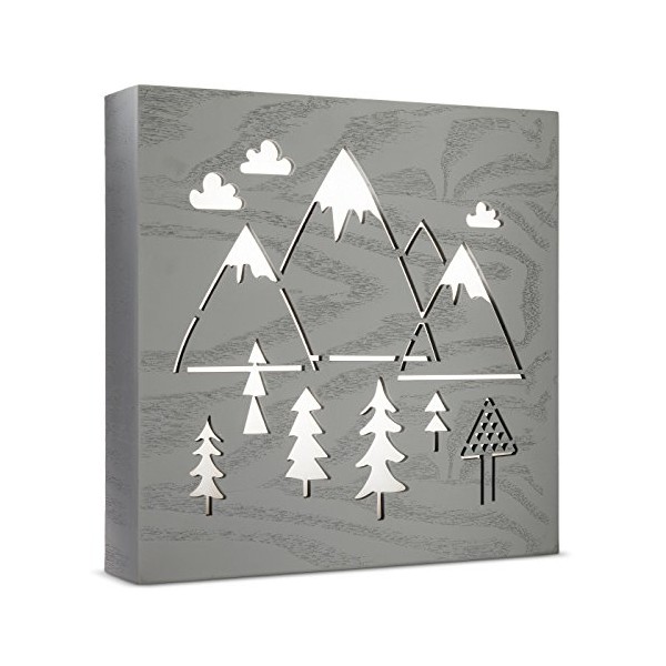 Let your adventure-themed baby nursery come to life with the Light Gray Mountains LED Light Box from Cloud Island. With landscape scenery cut outs like mountains, trees and clouds, your little explorer will be ready for all of their trips outdoors. The neutral grays and forest touches will fit right in with your baby's wooden wonderland.