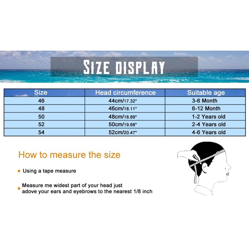 Size 3-6 Months: Head circumference: 43-45cm, suitable for children from 3 to 6 months.