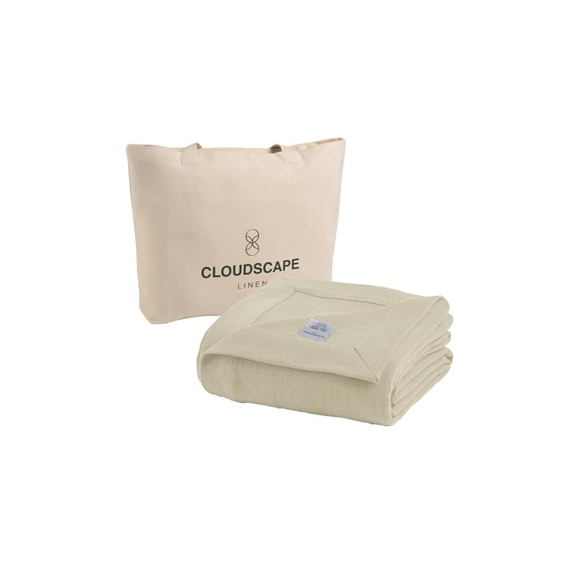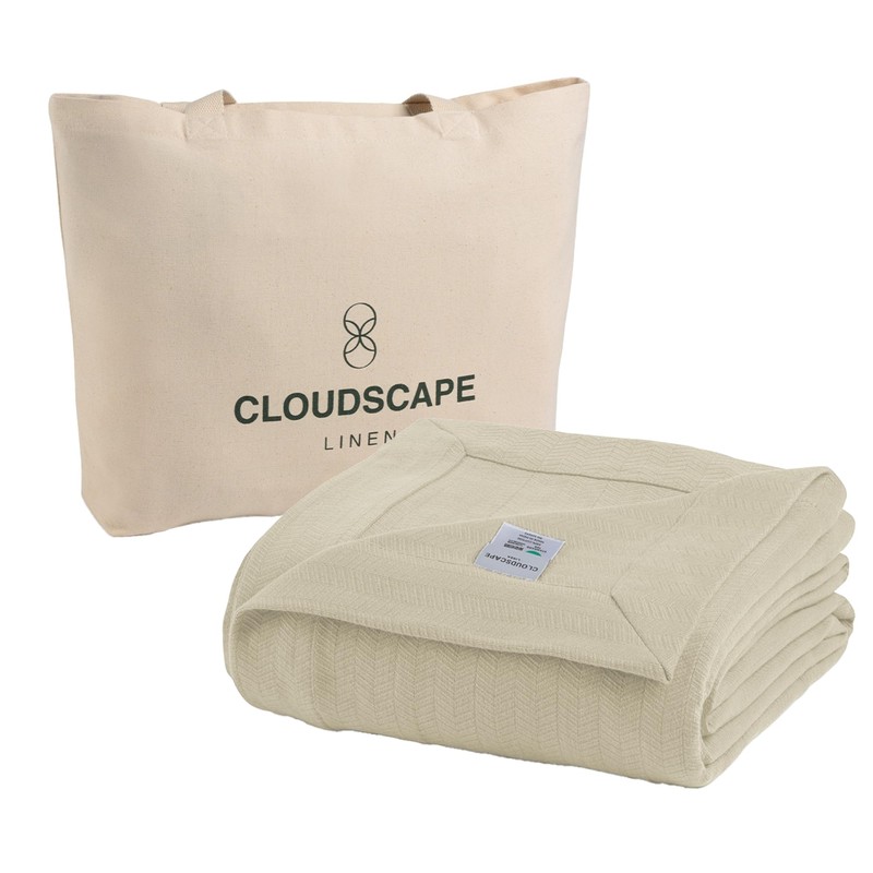 Cloud Scape Linen King Size Herringbone Cotton Blanket – Soft, Lightweight, All-Season Bed Blanket, 92 x 108,Fog