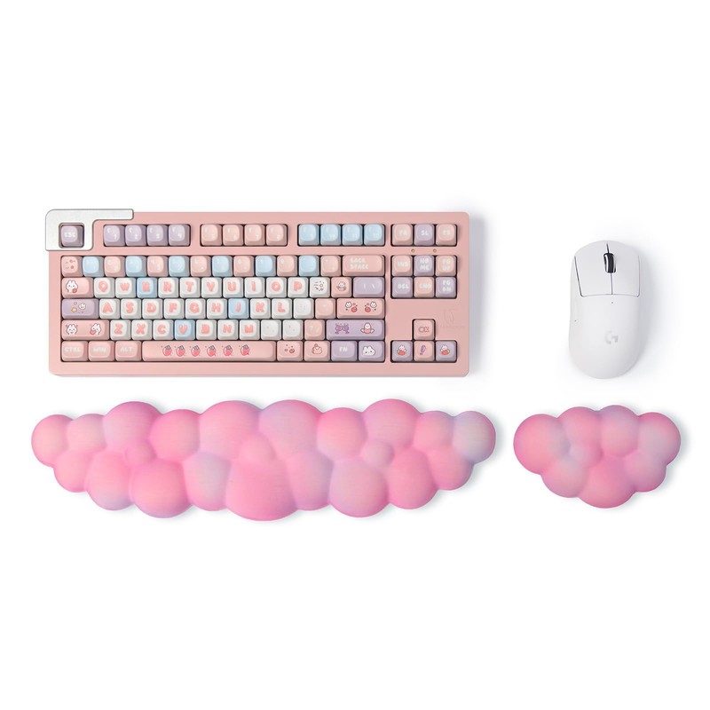 Cloud Wrist Rest Keyboard, 2 Pack Pink Cloud Keyboard Wrist Rest Cute, Soft and Breathable Memory Foam Keyboard Wrist Rest Set for Office, Gaming, Computer(Pink Gradient)