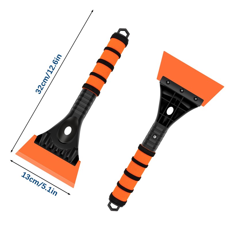 • ☃️☃️LARGE & WIDE TPU BLADE - SCRAPE FROST AND LOOSE SNOW: Our ice scraper features the TPU blade in 5.1in /13cm wide, which is made of high-quality thermoplastic polyurethanes. It can help scrape frost and snow, and easily reach all angles of the car window without damaging the windshield. Saving your time and effort to make your car's windshield and windows completely clean and clear.