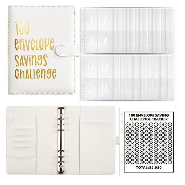 【CLOUDSEA】100 Envelopes Money Saving Challenge Money Saving Binder 100 Envelope Challenge Binder Savings Binder Envelope A5 Savings Challenge Book:_white gold