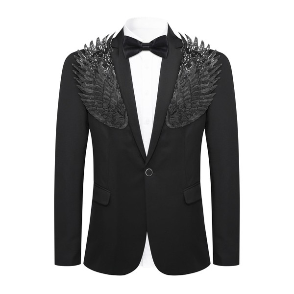 Cloudstyle Men's Wedding Sequin Wing Stage Clothes Premium Suit Jacket Blazer Coat, Black Black, Small