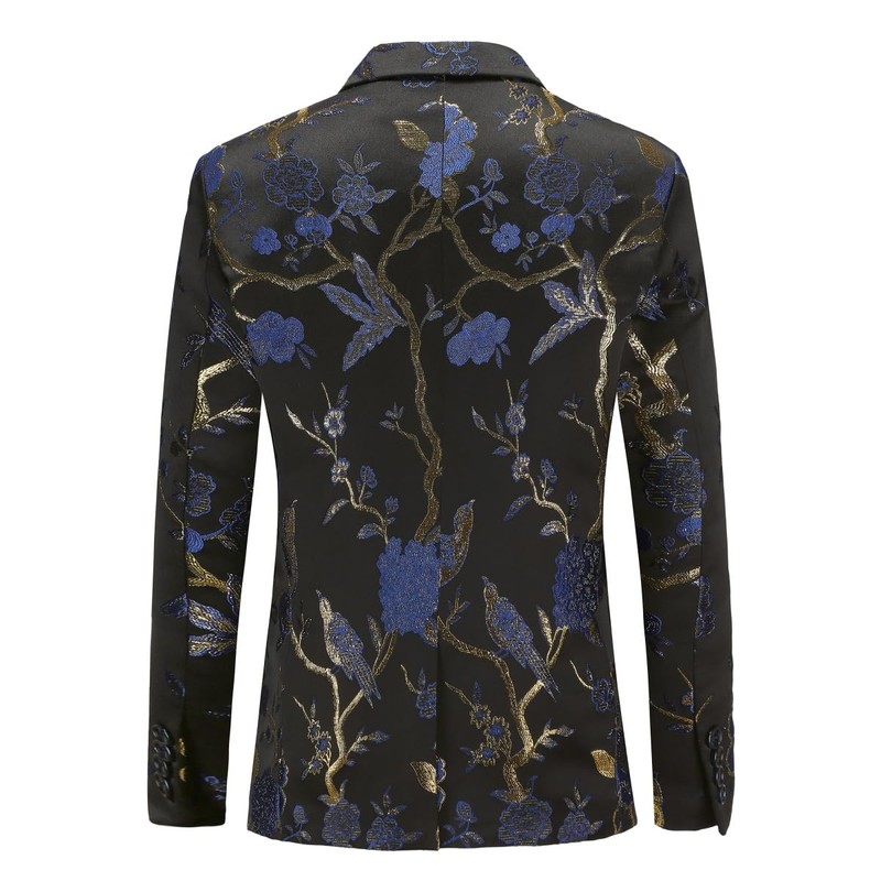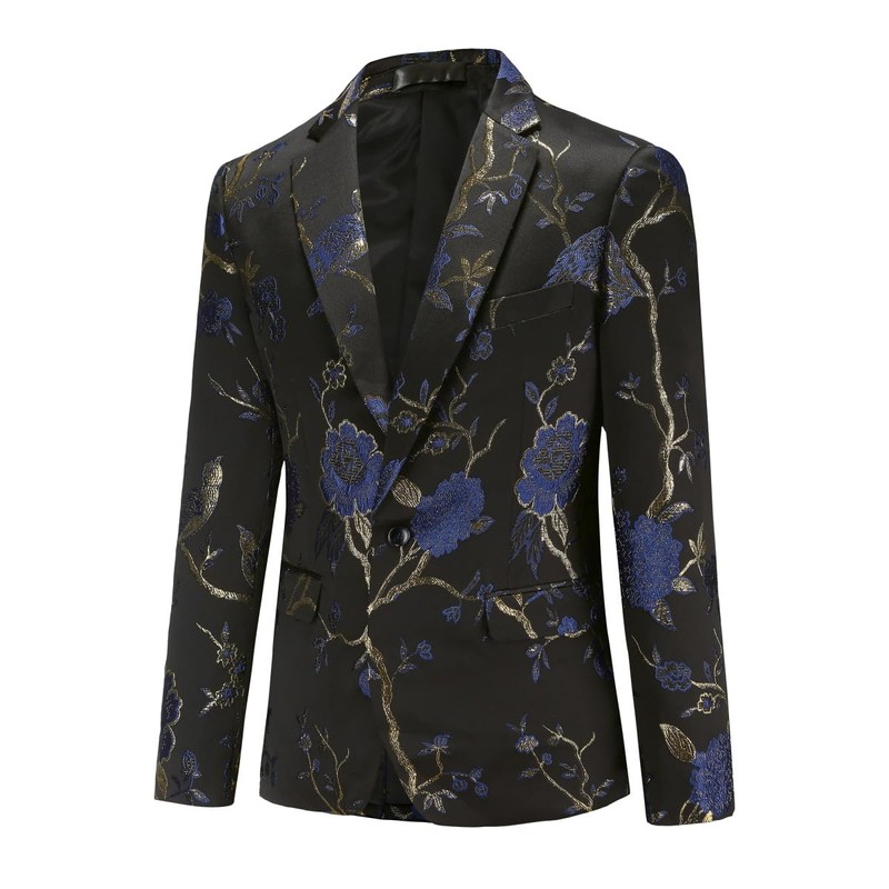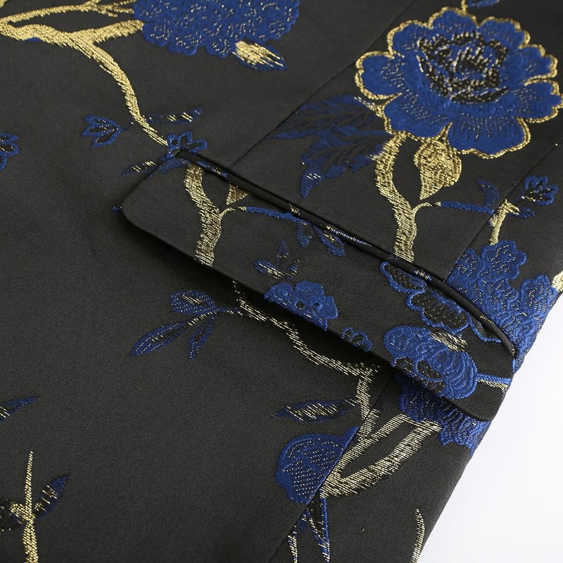 Cloudstyle Mens 2 Piece Floral Dress Suit One Button Dinner Tuxedo Jacket & Pants Blue