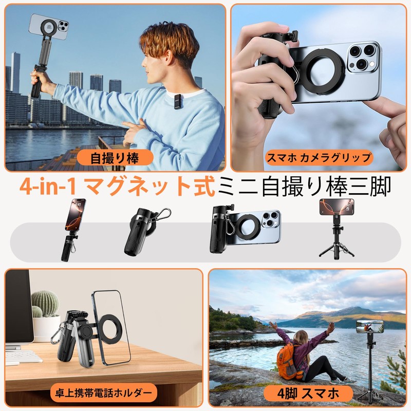 CloudValley [4-in-1 Multi-Function] Smartphone Camera Grip, Lightweight, Lighted, Smartphone, Tripod, Magnet, For Magsafe Selfie Stick, 2 Modes of Mobile Phone Mounting, Magnetic Suction Clip, 360