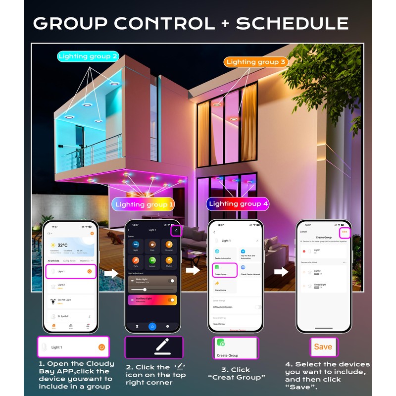 - 💡Group Control & Music Sync: You can group multiple lights for different room settings, set automatic on/off timers, and even sync the color changes with music or game sounds on your smart devices. It’s a fun way to enhance your lighting experience1