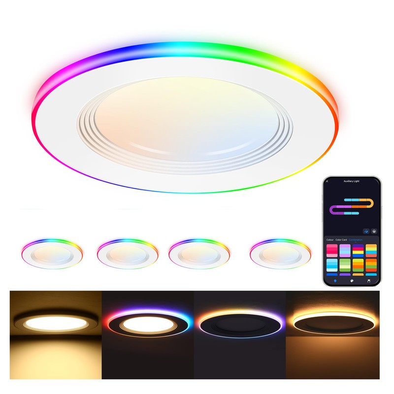 CLOUDY BAY [4 Pack] 4 Inch RGB Smart Recessed Lighting with Gradient Accent Light and Night Light,13W Recessed Lights Ultra-Thin Can-Killer Downlight, Compatible with Alexa and Google Home Assistant